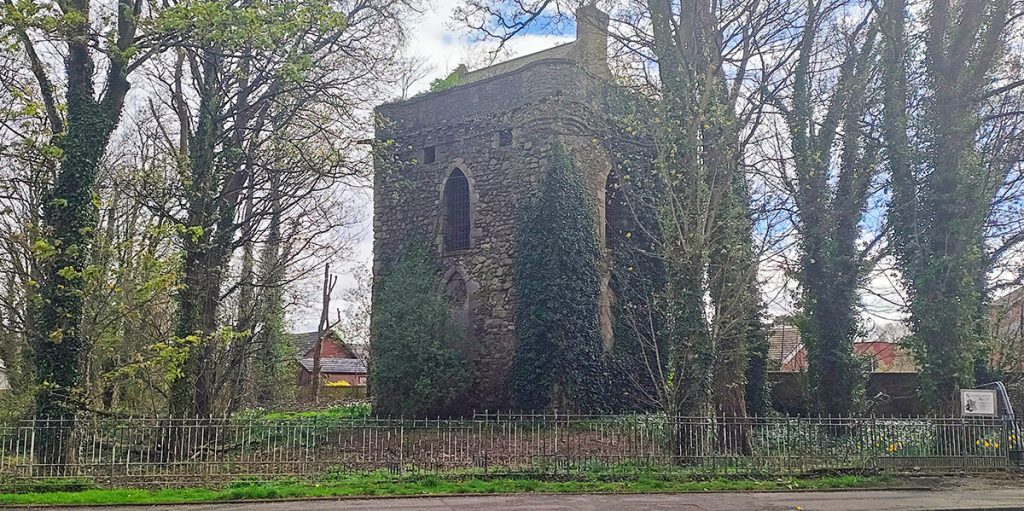 The castle is about 1 1/2 miles from Eglinton Castle and underwent repair and refurbishment around 1750, which added large gothic windows.